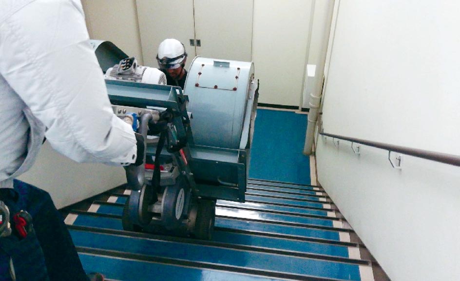 階段を昇降できる道具を使用し搬出搬入作業を行います。